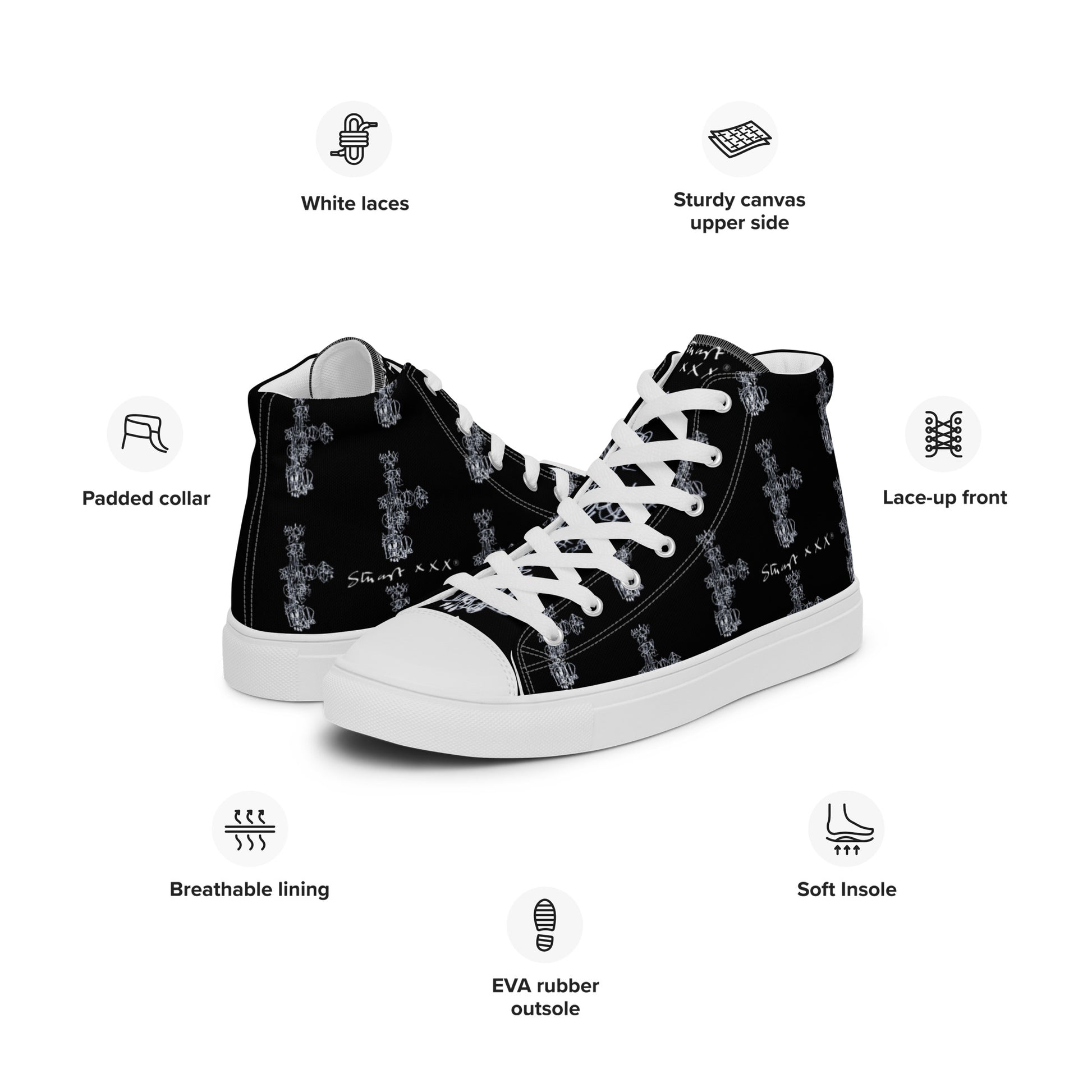 Step up your shoe game with the High Top Canvas Shoes. These handmade, trendy shoes are sure to spice up your outfit. Get yours now!